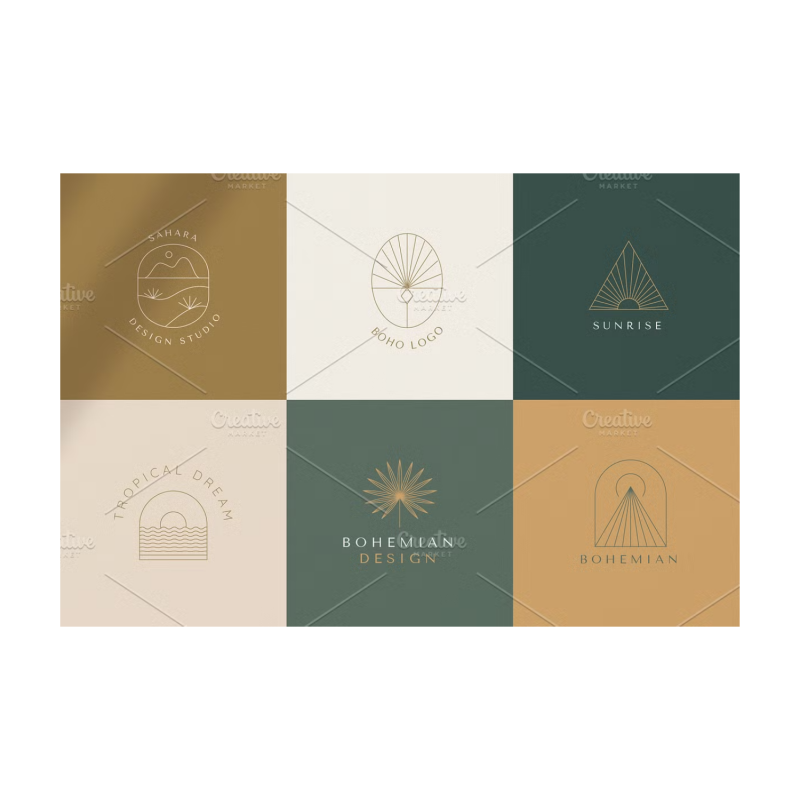 Bohemian logos - a new set of vector design elements and templates. Abstract logos and branding elements in trendy linear minimal style, emblems, and badges for design studios, shops, female businesses, and handcrafted products.