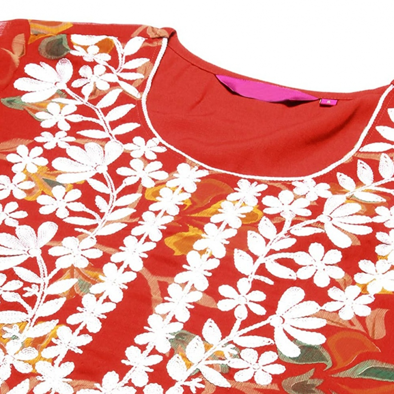 • This set includes: 1 Kurta || Work : Printed & Chikankari Embroidered || Neck Style:- Round Neck