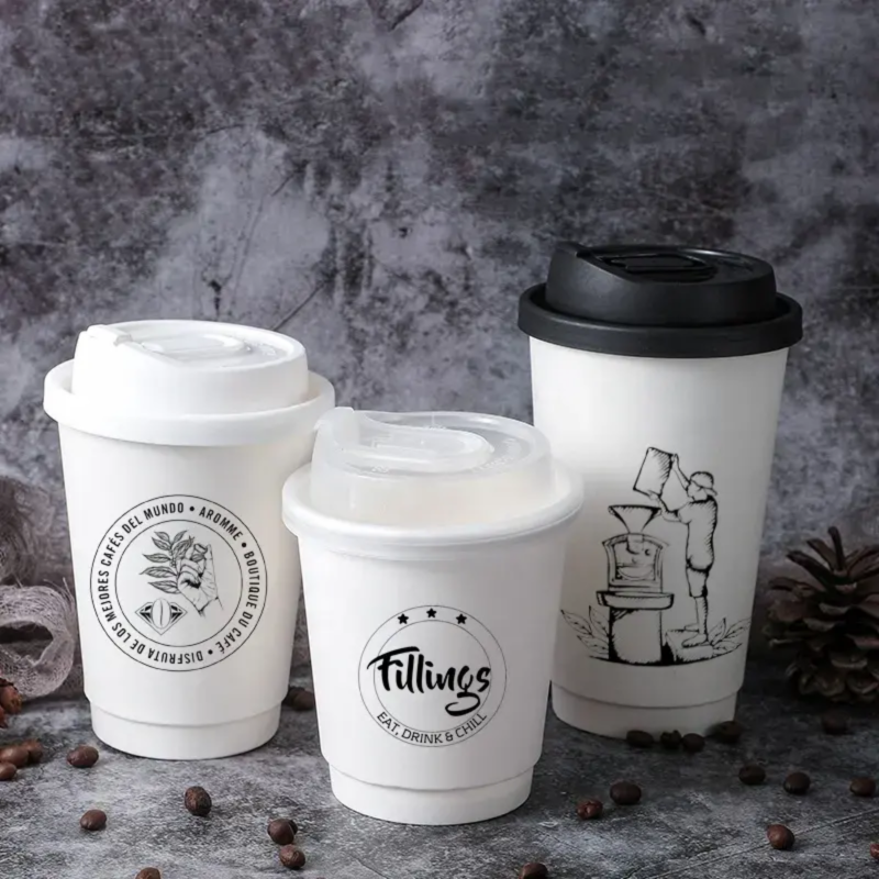 Double Wall Hot Coffee Paper Cups With Lids