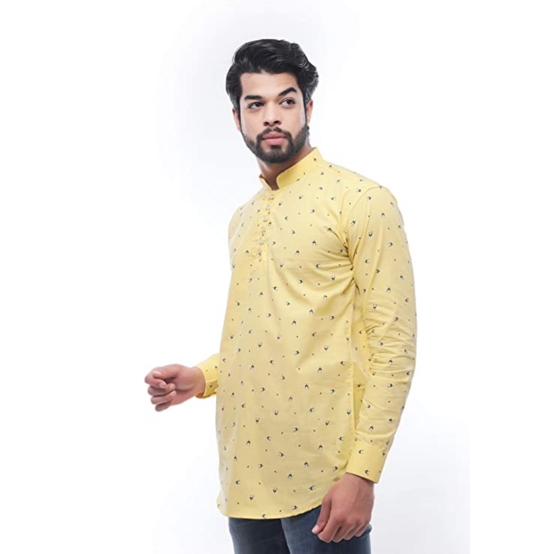 Prinit Attires Men's Cotton Printed Short Kurta