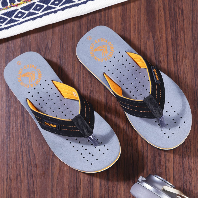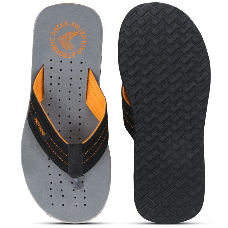 • {✔} ANTI-SKID AND TIRED, ACHING LEGS: - Good Rubber Grip Enables You to Use These Slippers on Wet Floors, Tiles, Marbles, Etc. This Rubber Sole Is Long Lasting and Provides Uninterrupted Daily Usage. Doctor Extra Soft Flip-flops will help to control
