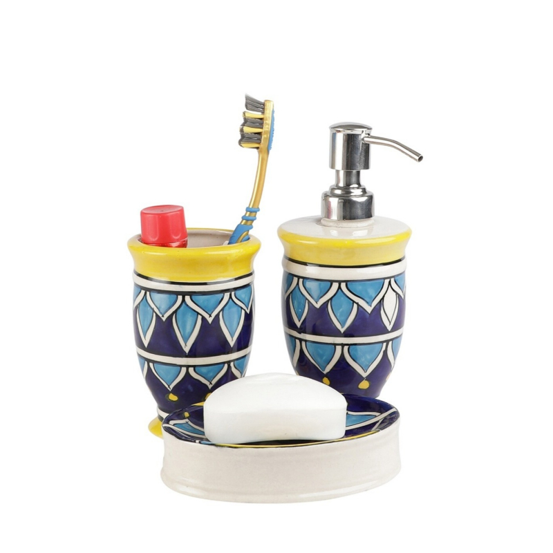 VAREESHA Hand-Painted Dispenser with Brush Holder & Soap Dish