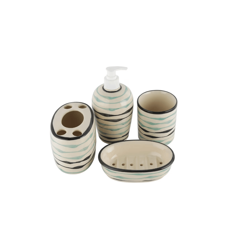 Package contains: 1 soap dispenser, 1 soap dish, 1 tumbler,1 brush holder