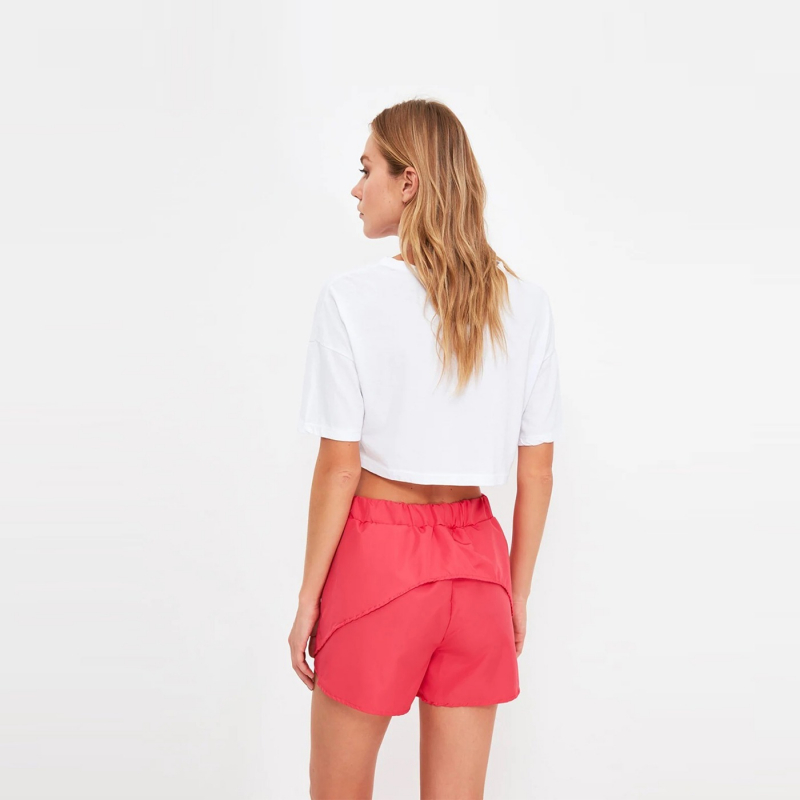 • Pink mid-rise regular shorts, has an elasticated waistband.