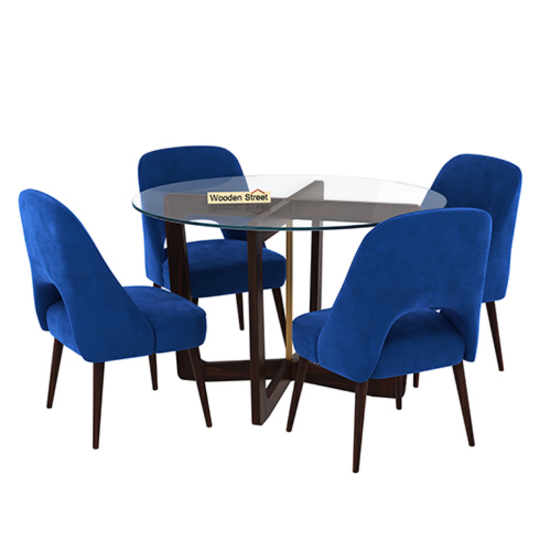With its exclusive pattern and striking design, our Wilfred Mozza 4-seater dining set is a one-of-a-kind addition to any dining room. This dining table is a sleek round table with a base mirror and a set of four seats. The chair's color definitely elevates and adds bright color to the space, and it also happens to be incredibly comfortable. This dining table set is one of the best examples of our commitment to providing designs with a creative flair; we promise. Buy this table right away to give your home some flair and comfort.
