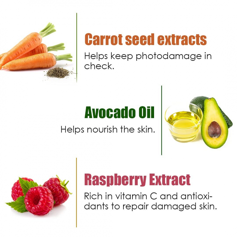 • It is infused with high concentration of skin-nourishing natural actives. Delivers the goodness of raspberry extract, carrot seed extract, avocado oil and vitamin E.