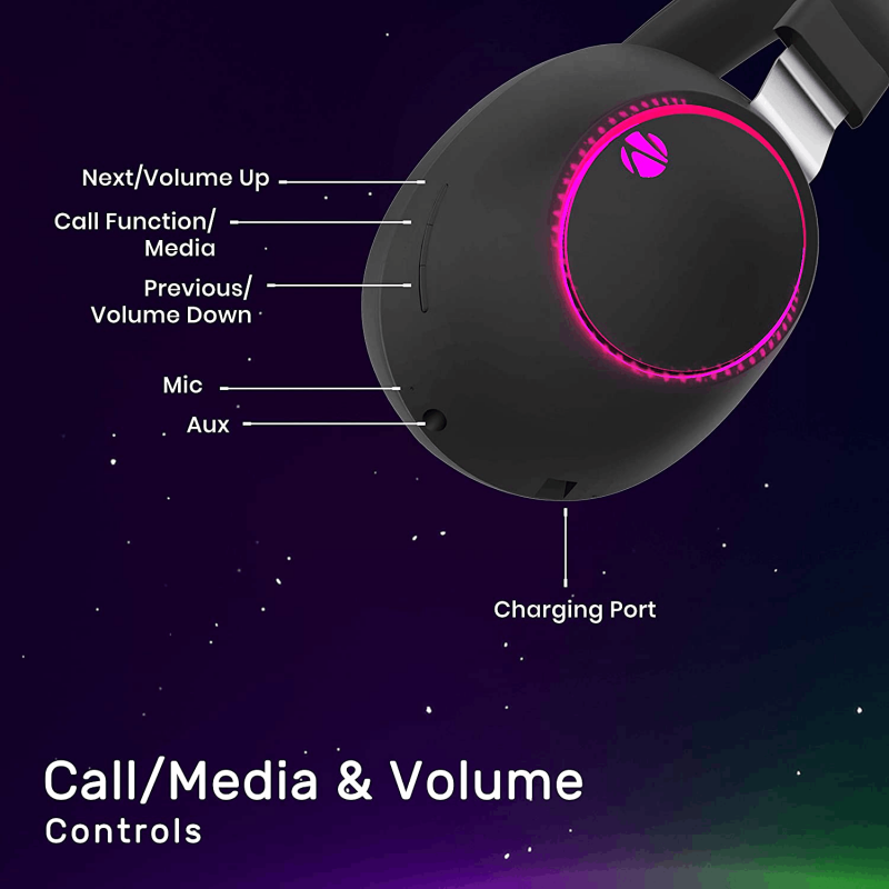 Adjustable HeadbandMedia/Volume control all FunctionBuilt-in Rechargeable Battery